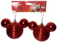 Conjunto 02 Bolas De Natal - Enfeite De Árvore Do Mickey Mouse - Cabeça Símbolo - Vermelho - Decoração Natalina - Disney