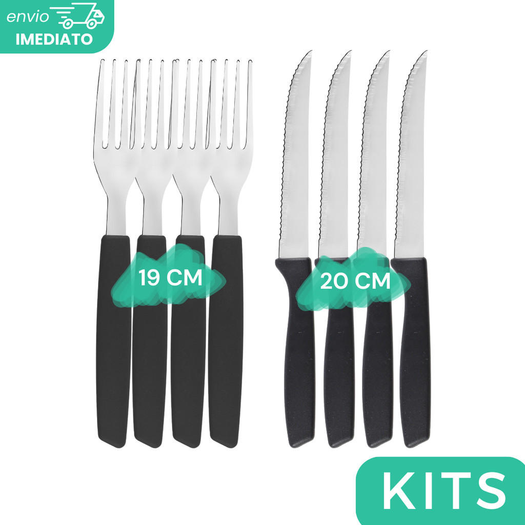 Conjunto de Talher 24/48/96 peças Garfo e Faca Preto Inox Premium
