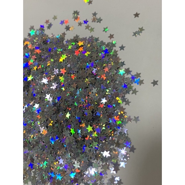 5g Glitter holográfico flocado em poliéster- estrela prata furta cor para resina epóxi, nail artes e artesanato em geral