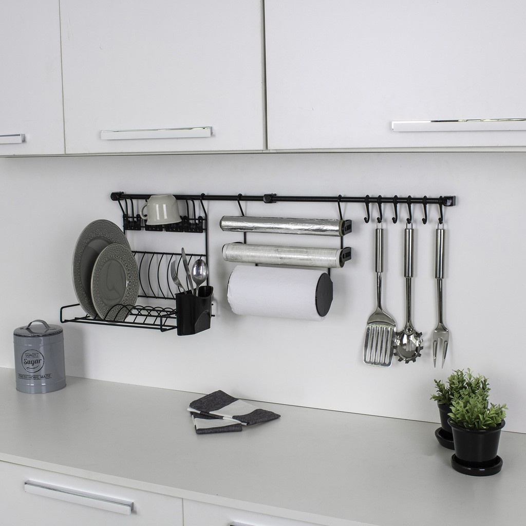 Requinte Kit C Master E Organizador Aramado P/ Parede De Cozinha Preto