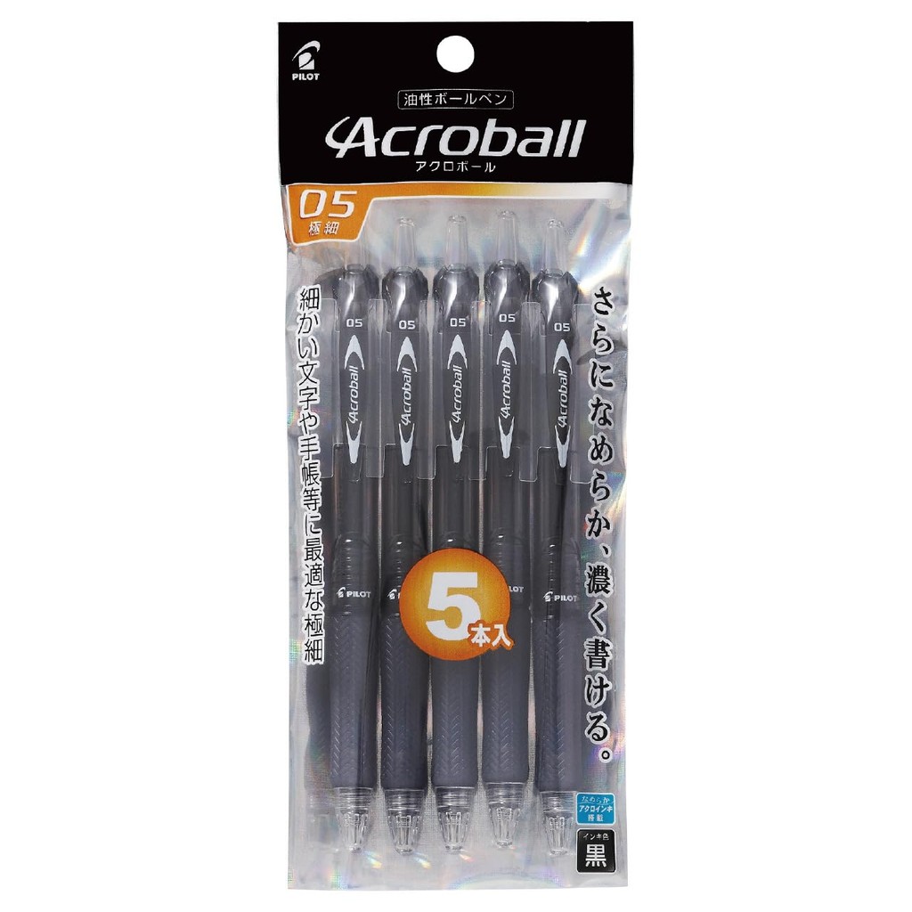 Caneta esferográfica piloto à base de óleo Acroball 0,5 preta 5 peças PBAB75EF5BB [Enviado diretamente do Japão]