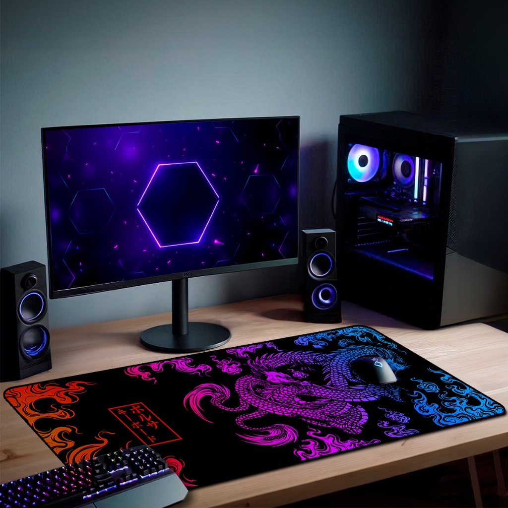Mouse Pad Gamer Dragao Japones Antiderrapante Grande 70x35 80x35 90x40 90x50 cm Jogos Anime Borda Costurada M903