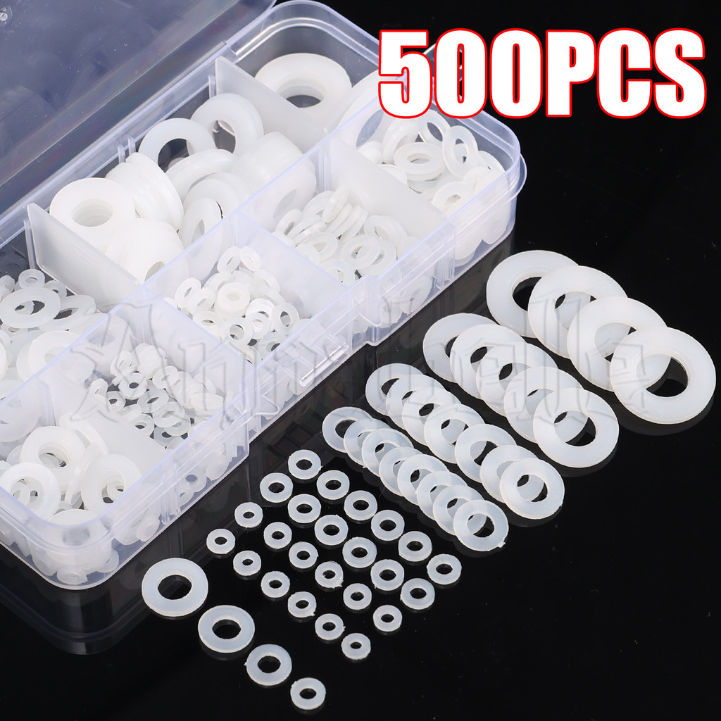 Kit De Sortimento De Arruelas Planas De Nylon De 500 Unidades-Anel De Junta De Vedação De 8 Tamanhos-Ferramentas De Fixa