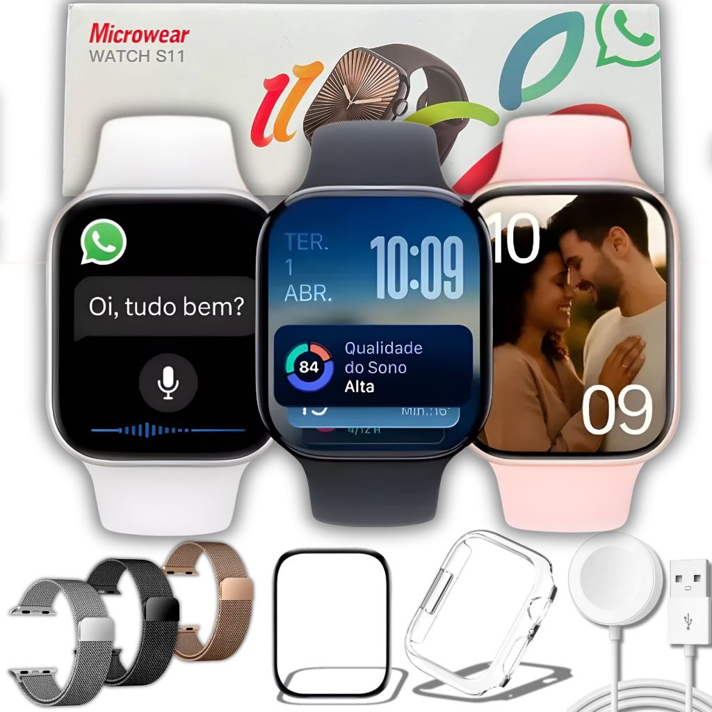 Smartwatch S11 Pro Série 11 Tela AMOLED Bluetooth Chamadas GPS 2GB Lançamento Relógio Inteligente