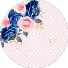 Painel De Festa Redondo 1,5x1,5 - Efeito Geométrico Rosa com Floral Azul e Dourado 038