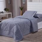 Kit 4 Peças Solteiro Com Edredom E Lençol Com Elástico Cinza