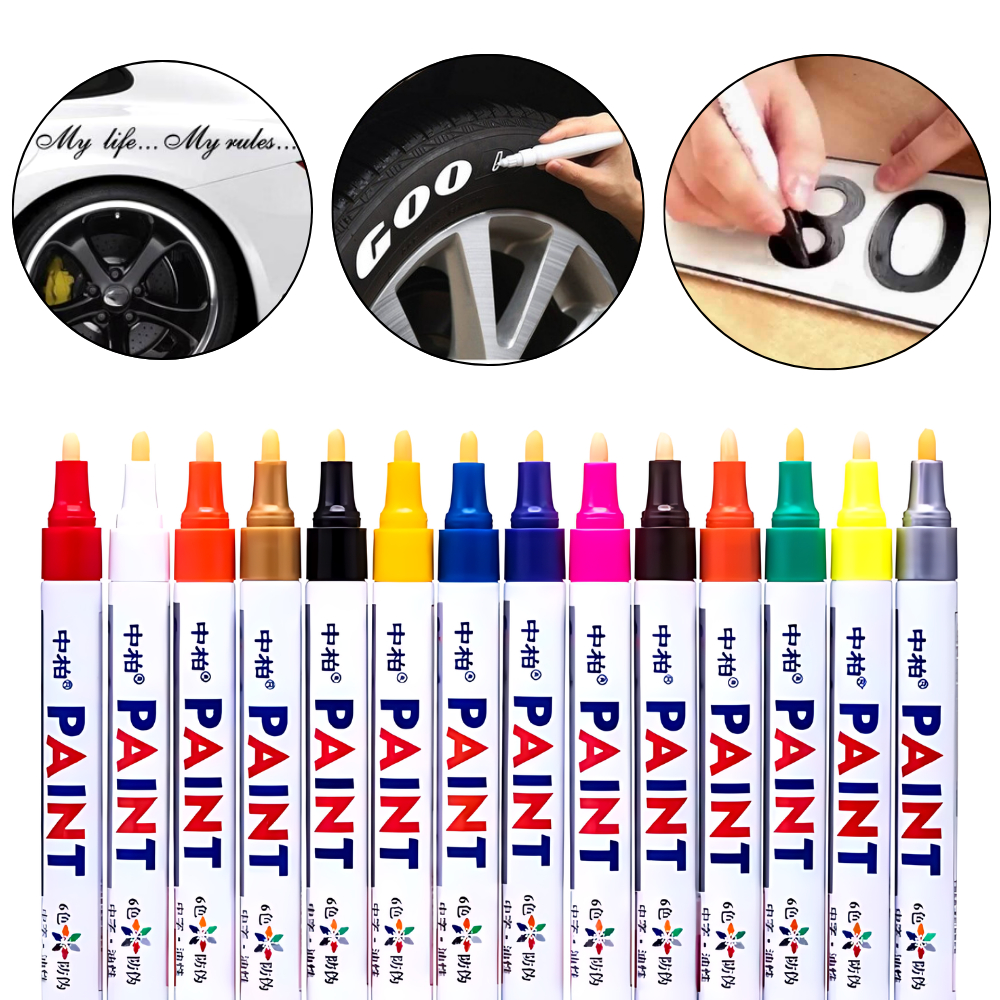 Caneta Paint Reparadora Pintura Automotiva Permanente Não Sai Água Tira Riscos Carro Moto Retoque Placa Tênis Pneus