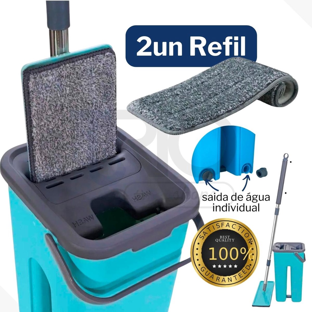 Kit de Limpeza Completo: Flat Mop com Balde Lava e Seca + 2 Refis de Esfregão