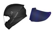Kit capacete race tech hit preto fosco com viseira hit azul iridium