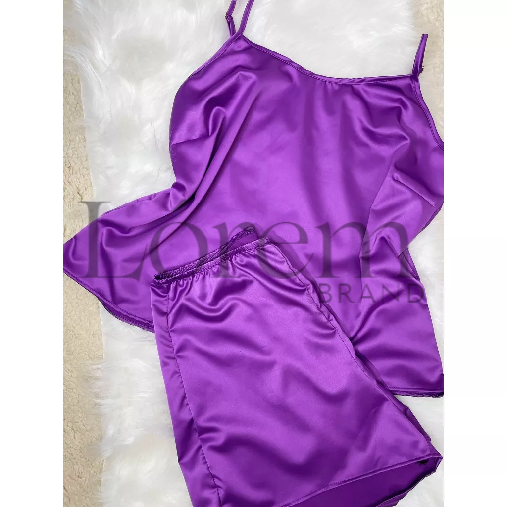 Conjunto de pijama roxo feminino cetim de seda Baby doll com elastano