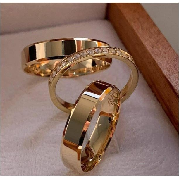 Par de alianças moeda antiga mais aço inoxidável mais anel solitario para casamento noivado caixinha de veludo banhado a ouro 18 8mm