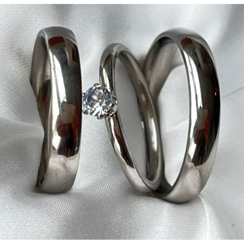 Par de Aliança Tradicional em Aço Cirúrgico Namoro Casamento Lisa Boleada 4 mm + Anel Solitário 2 mm