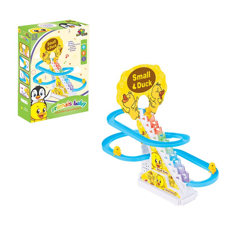 Pato De Brinquedo Educativo Pista Playground Patinho Sobe Escada Som Luz Escalada Musical Infantil