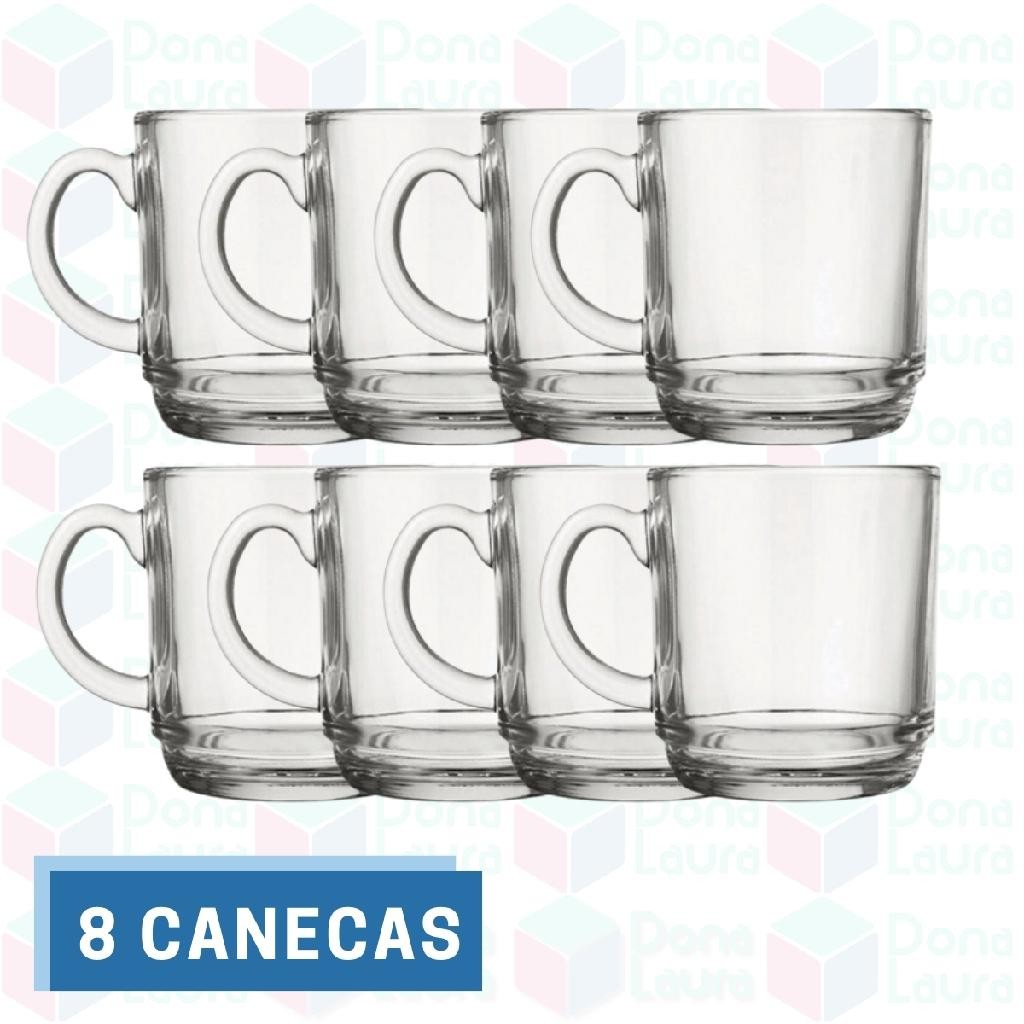 Kit 8 Canecas Transparente Vidro 250ML Café Cappuccino Chá