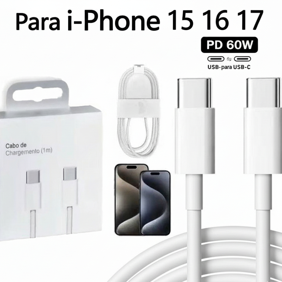 Cabo de iPhone 60W PD USB-C + cabo tipo c Original para iPhone 15 16 17
