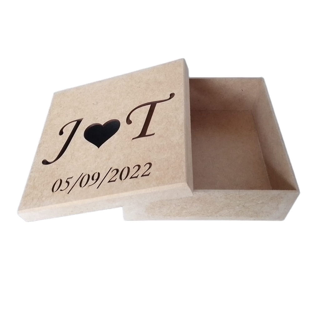 10 Caixa 15x15x5 com Iniciais dos Noivos mais Data Casamento MDF Madeira