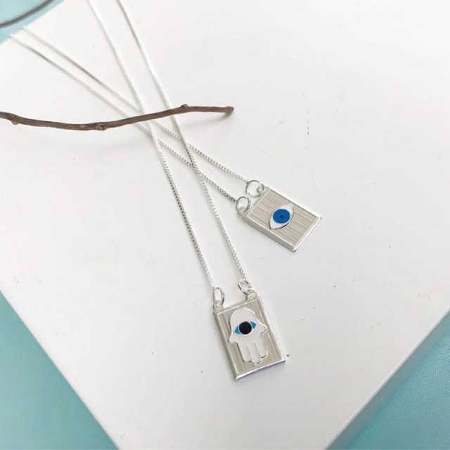 ESCAPULÁRIO UNISSEX OLHO GREGO E MÃO DE FÁTIMA HAMSÁ - PRATA 925