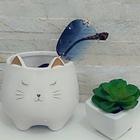 Vaso Cachepot Gatinho Branco e Dourado ou Porta Sabonete Liquido em Porcelana Perfeita Decoração - FWB