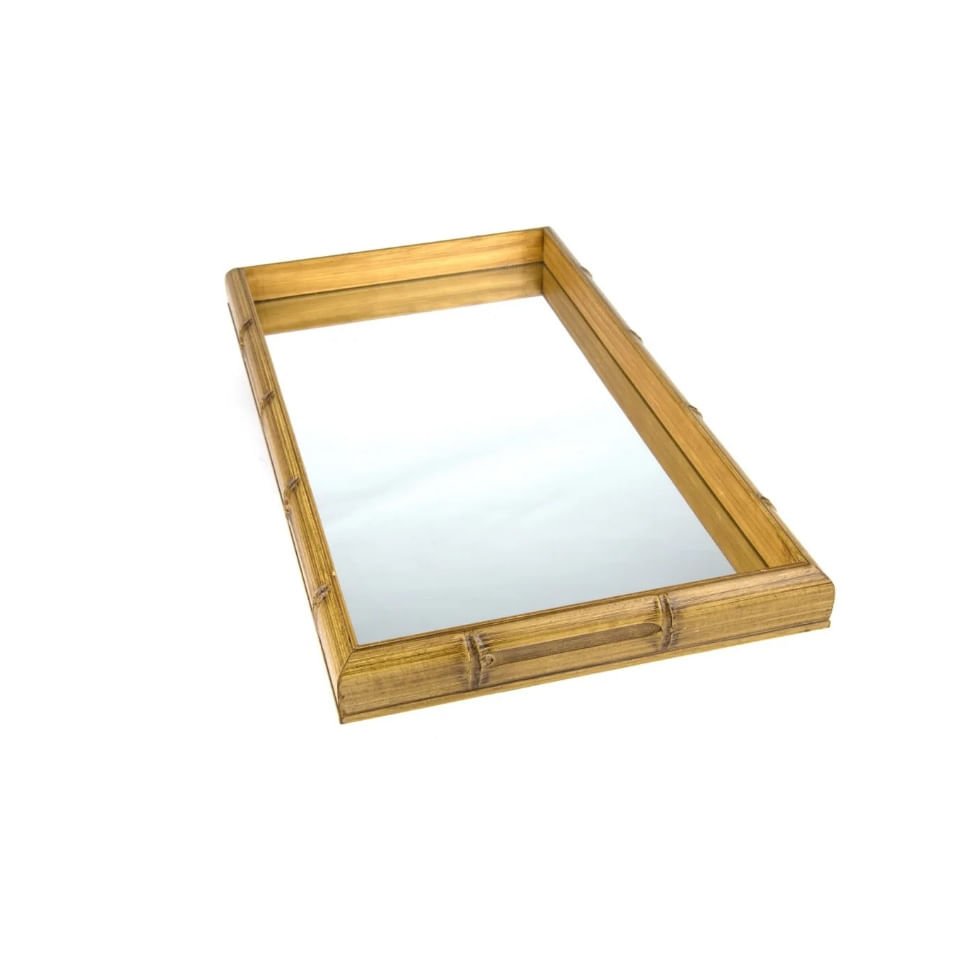 Bandeja de Metal com Espelho Dourada 15cm x 25cm x 4cm - Lyor