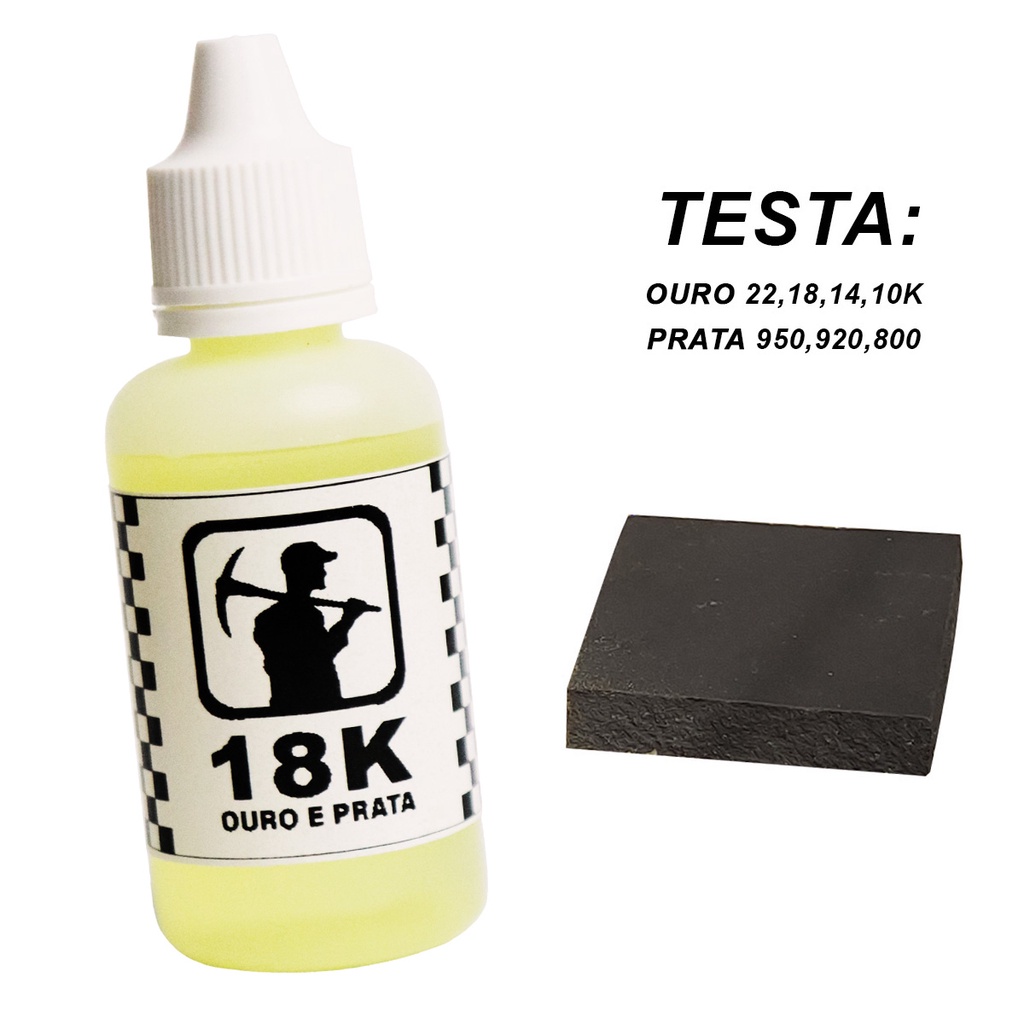 Kit Teste de Ouro Prata Joias Liquido 18k e Pedra de Toque com Nota Fiscal