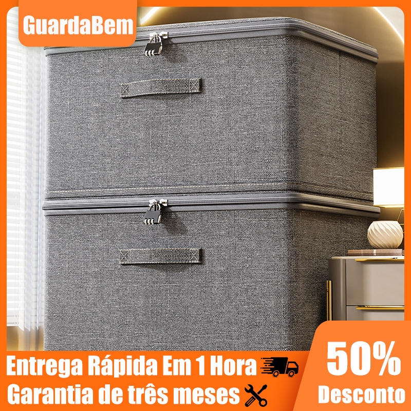 Caixa grande de armazenamento com zíper para roupas e cobertores P/M/G