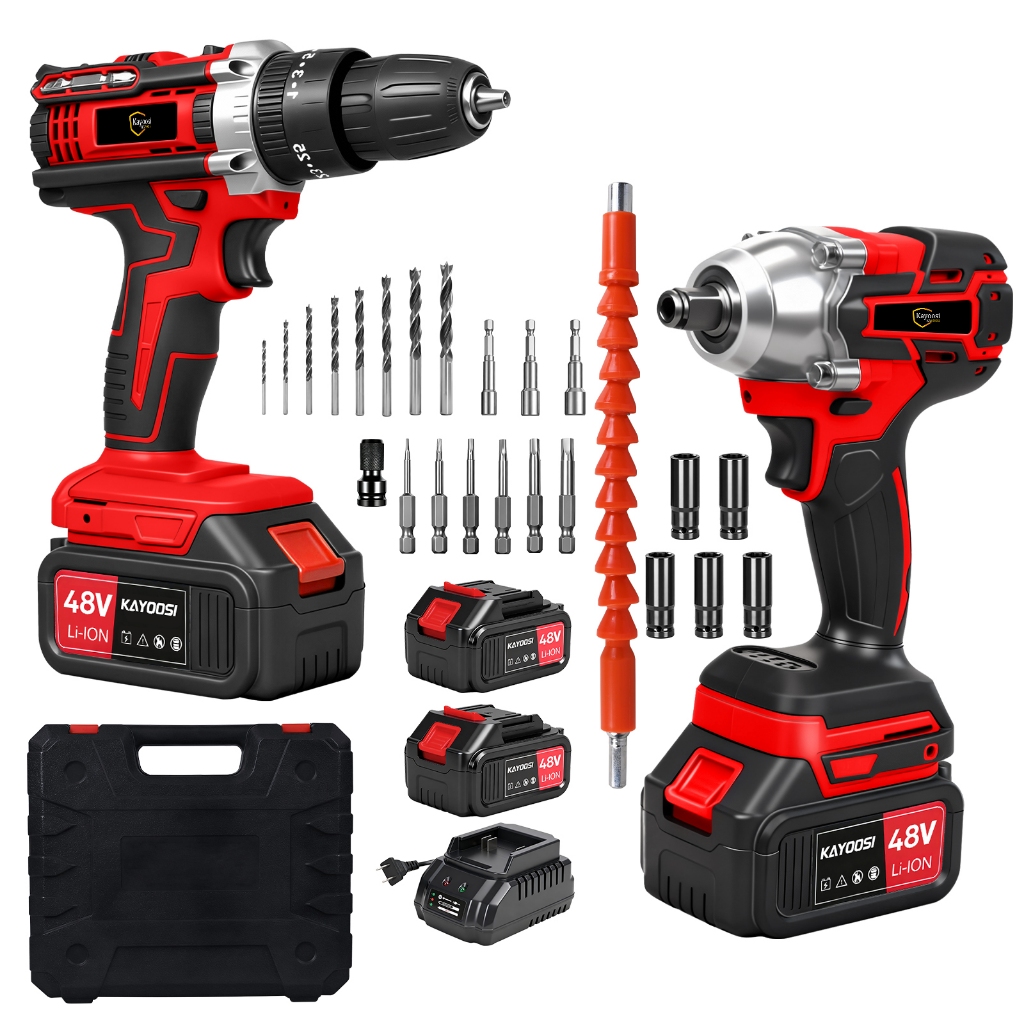 Kit 2 Furadeira Parafusadeira Elétrica + Chave de Impacto A Bateria 48V Brushless