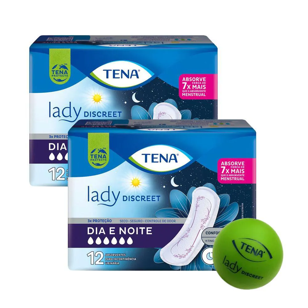 KIT 2 ABSORVENTES PARA INCONTINêNCIA URINáRIA TENA LADY DISCREET DIA E NOITE 12UN + BRINDE BOLINHA ANTI-STRESS LADY TENA