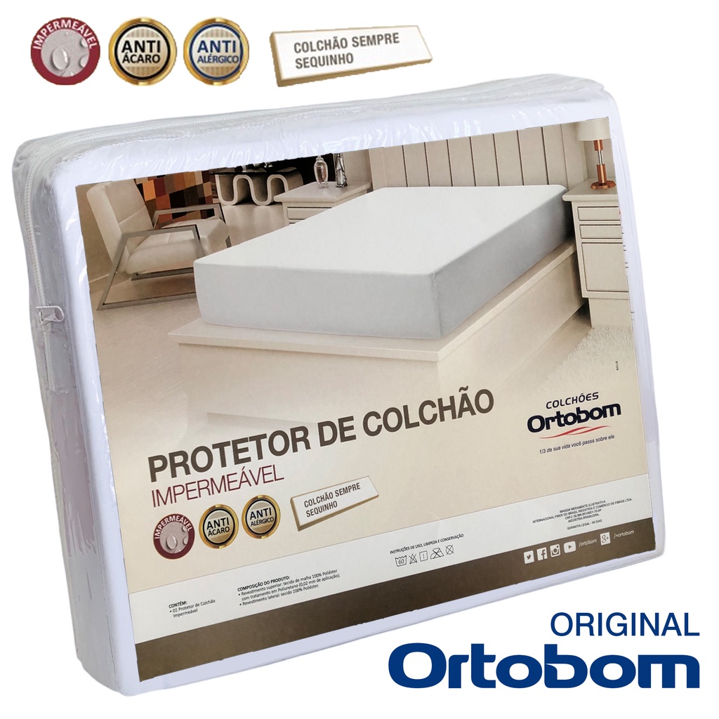 Protetor de Colchão Impermeável Ortobom Branco Com Elástico Para Cama Box Tamanhos Solteiro Casal Padrão Queen e Super King Capa Protetora Lavável Protege