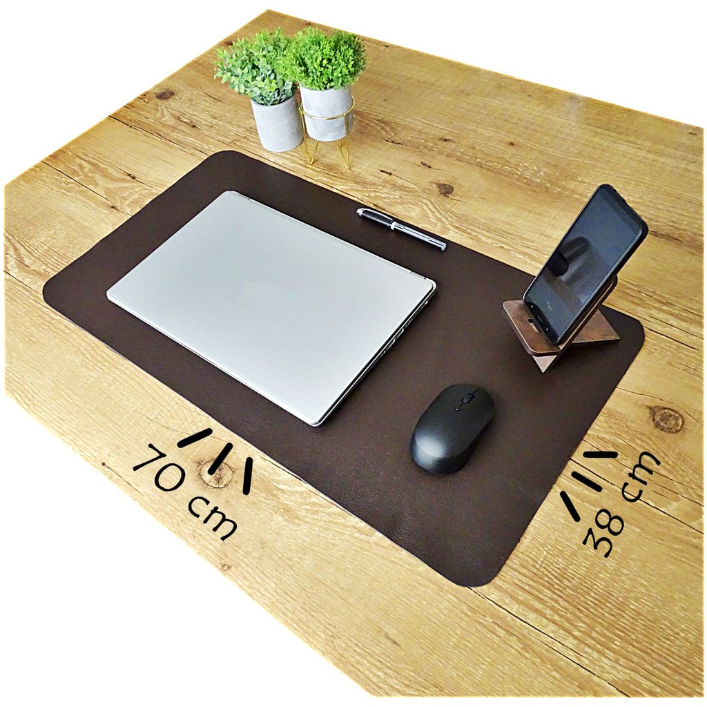 Mousepad Grande Couro Legítimo Café Deskpad 70x38cm + Brinde