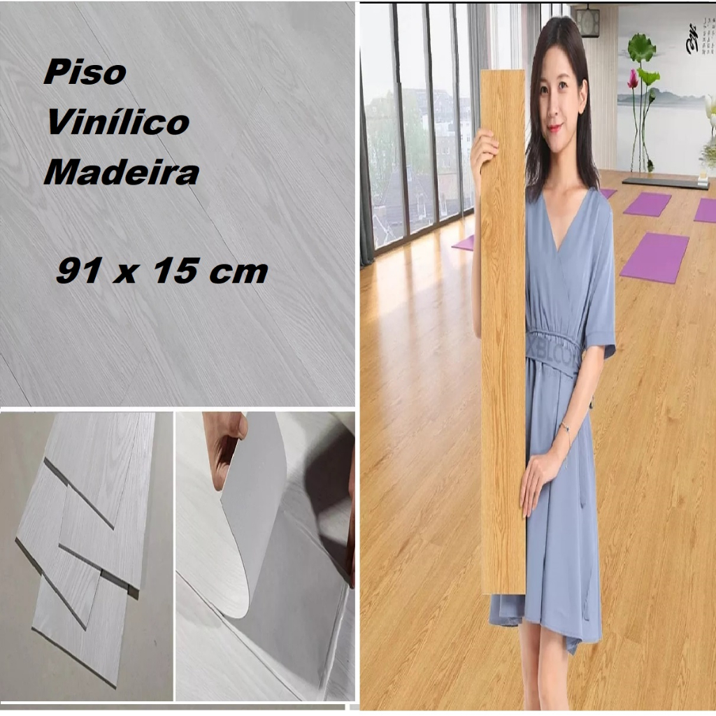 Piso Madeira Vinilico Adesivo Autocolante 91 x 15 cm