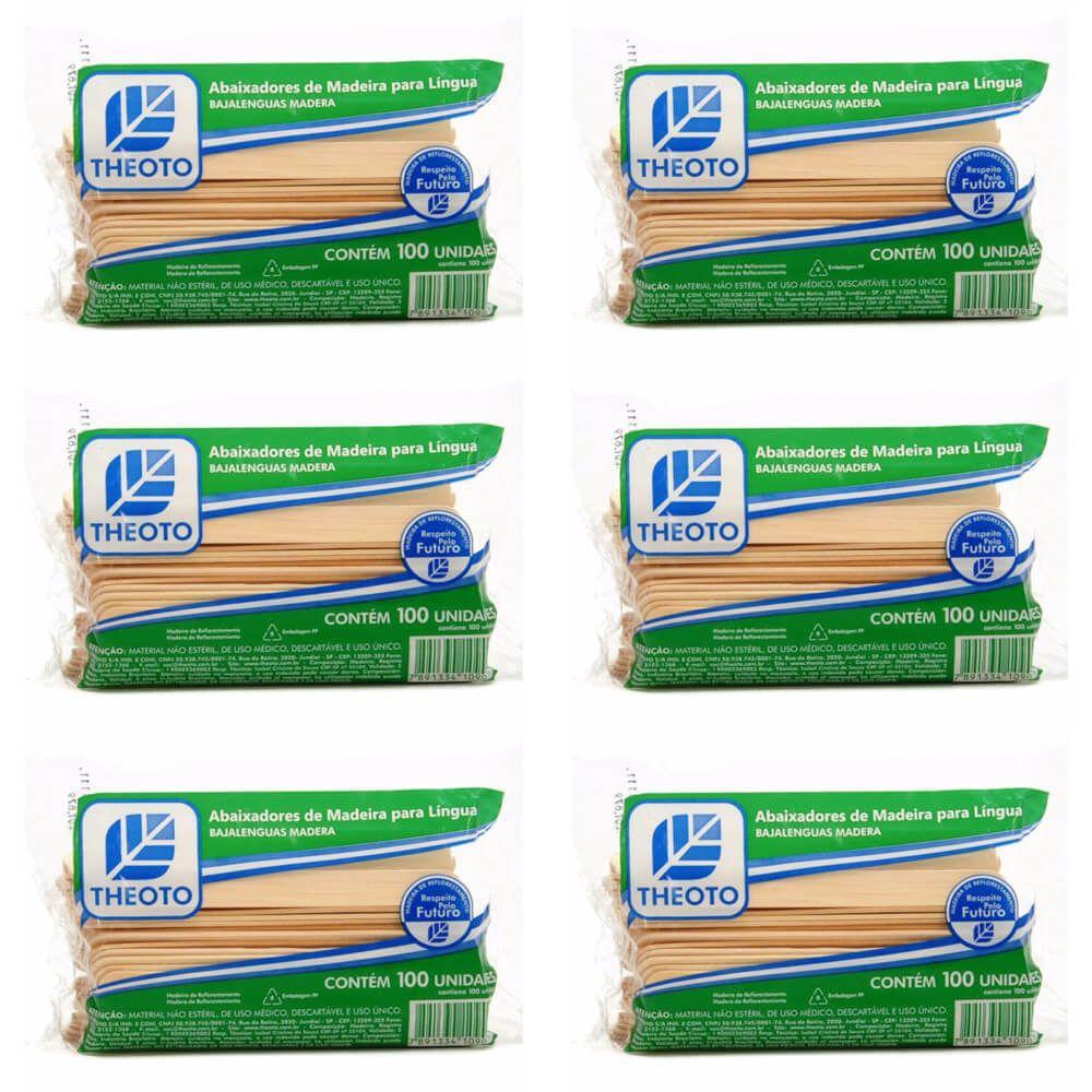 Abaixador De Lingua 6 Pacotes C/100 Espátula De Madeira Palito