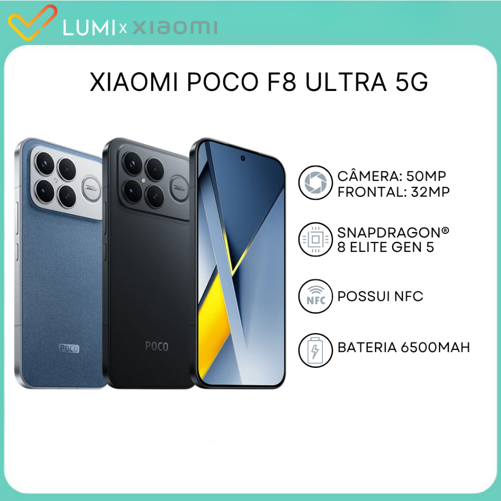 Xiaomi Poco F8 Ultra 5G, 512GB + 16GB RAM, Câmera 50 MP, Versão Global, Processador Snapdragon® 8 Elite Gen 5