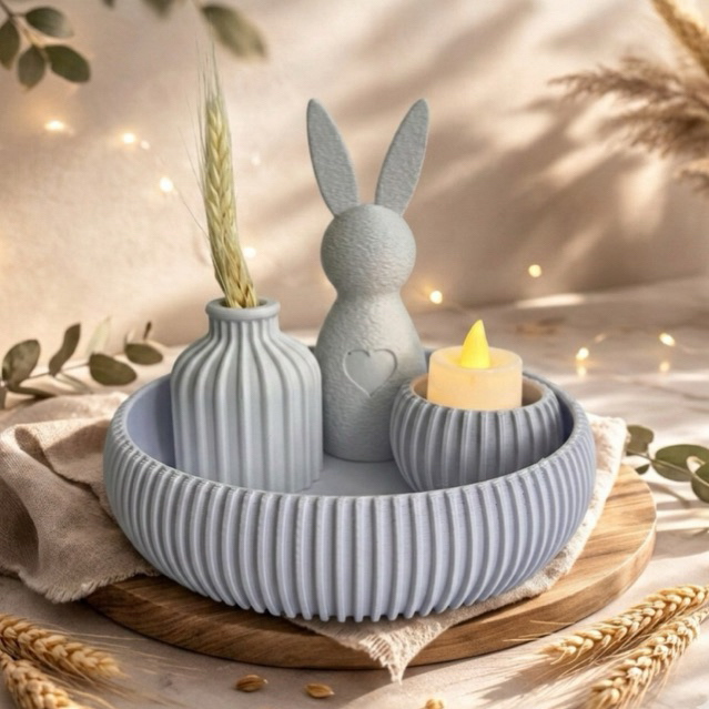 Decoração de Páscoa Coelho com Porta Velas e Tigela