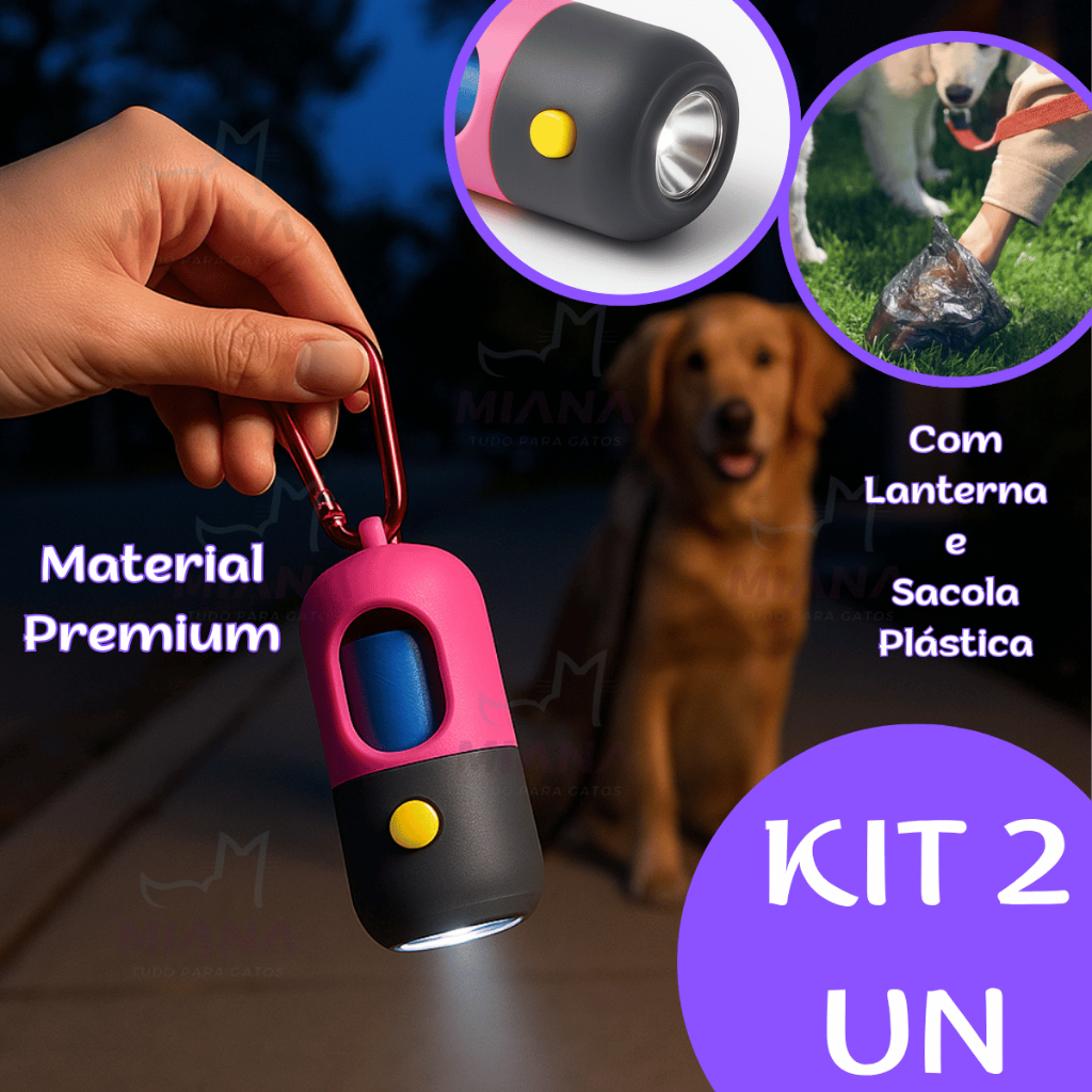 Kit 2 Chaveiro Pet Porta Saco De Lixo Com Lanterna Embutida Coleta Higiênica Passeio Noturno
