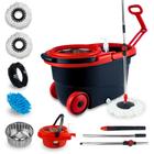 Mop Giratorio Com cabo de 140 cm Cesto Em Inox - Balde Centrífuga - C/2 Refil + Dispenser + 3 Refil