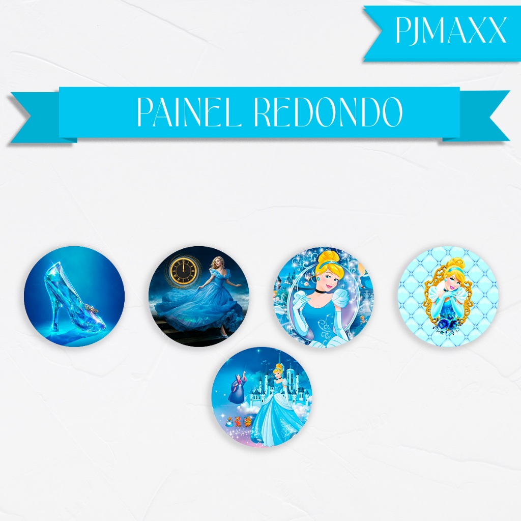 Capa Para Painel Redondo Tema Princesa Cinderela Decoração Elegante Cenario Malha Sublimada