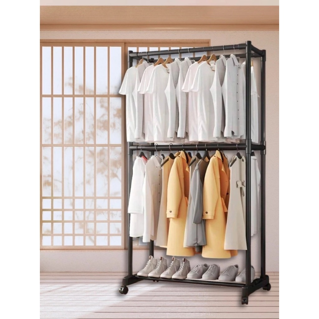 Arara De Roupas Com Sapateira Prateleiras Organizador Multiuso Em Aço Inox Guarda Roupa Cabideiro【1】