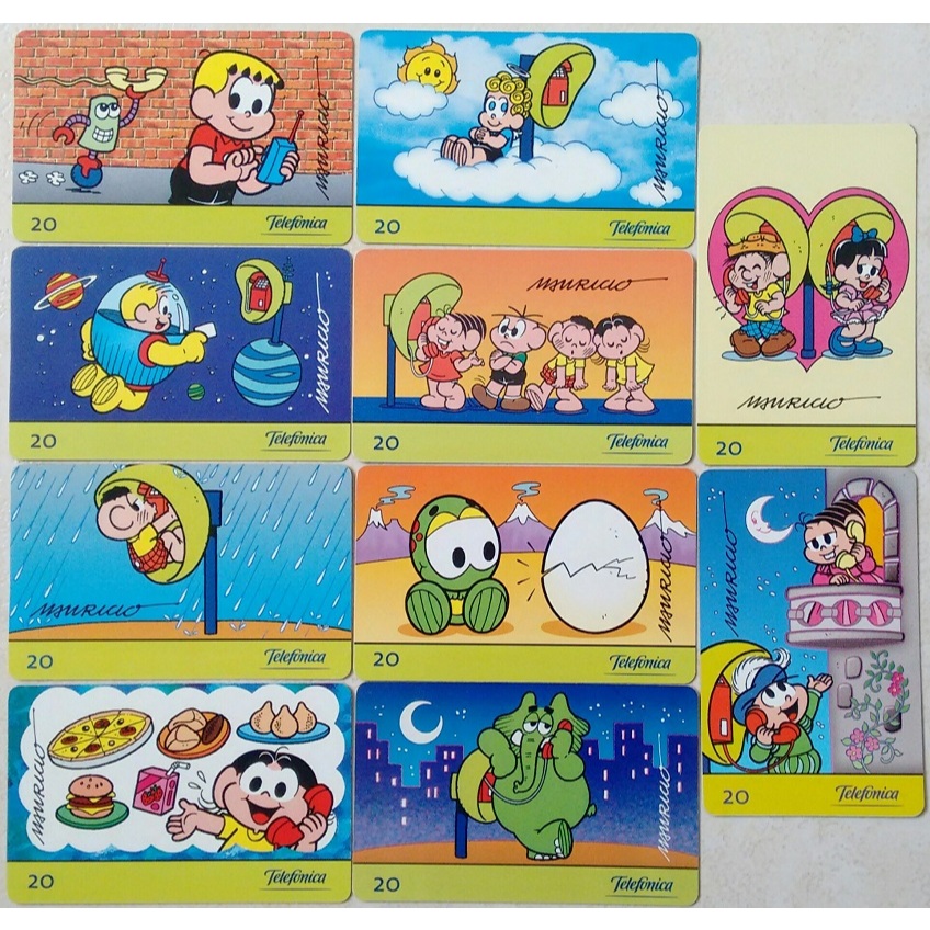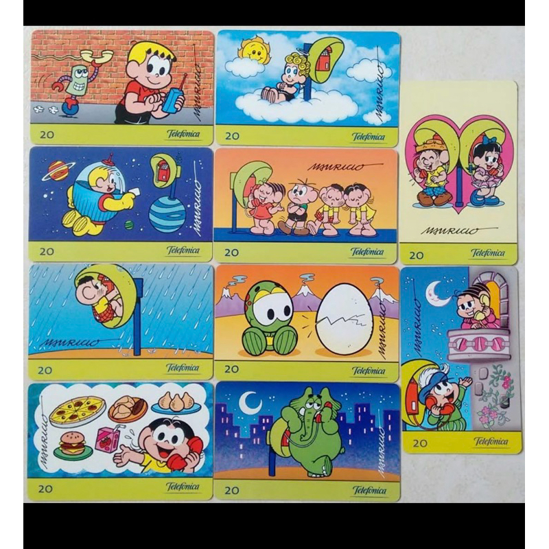 Série Completa com 10 Cartões Telefônicos da Turma da Mônica. Itens de Coleção Escassos