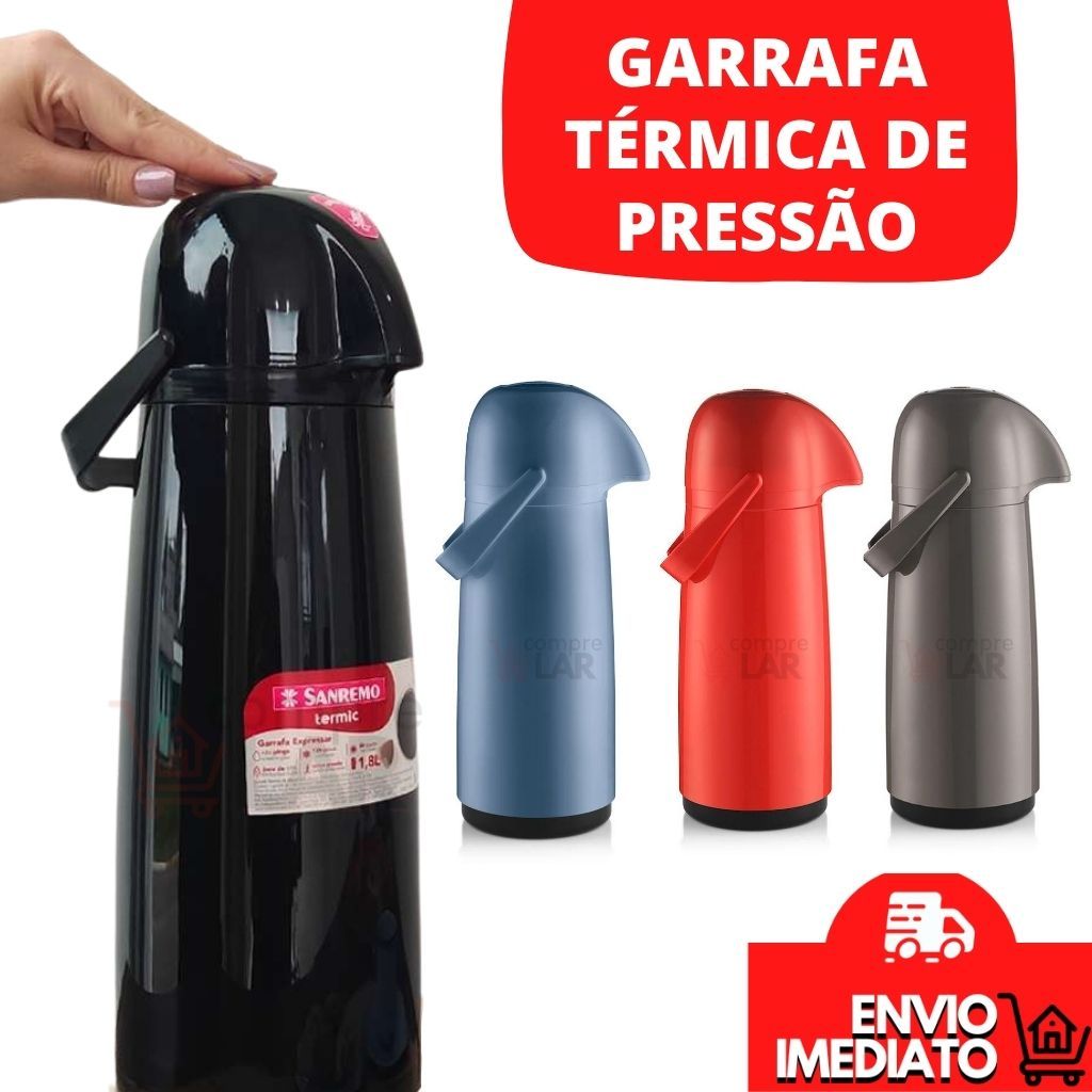 Garrafa Térmica De Água Café Pressão de Apertar 1 Litro Sanremo Super Jato Garrafa Termica Tampa