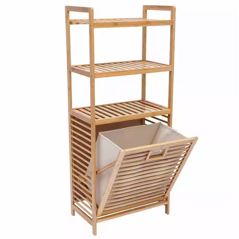 Rack De Bambu C/ 3 Prateleiras Cesto De Roupas Lavanderia