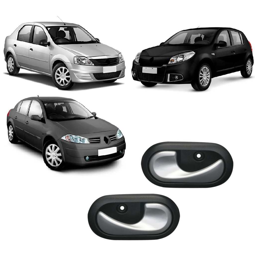 Par Macaneta Puxador Interna Duster Oroch Logan Sandero Megane Preta Com Prata