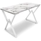 Mesa De Jantar Luna Tampo Retangular Off White 1,40 M Com Base Em Madeira