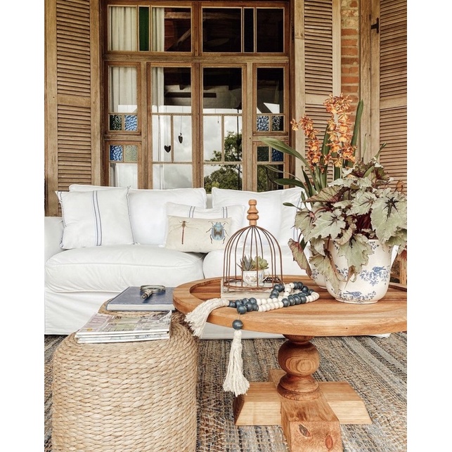 Pufe puff mesa redondo em fibra natural boho