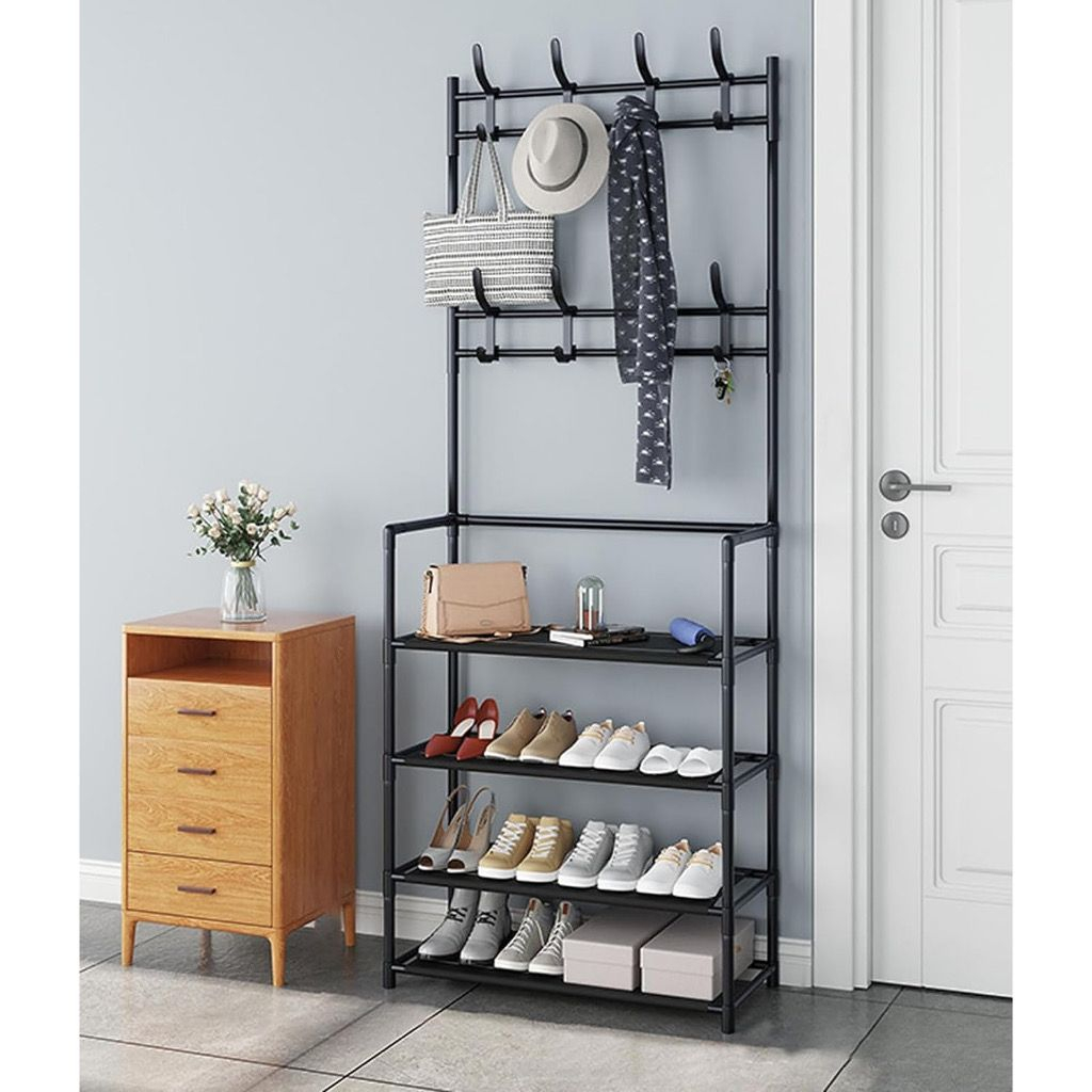 Sapateira 4 Andares Com Cabideiro Organizador Multiuso Em Metal 12 Pares De Sapato C/ganchos