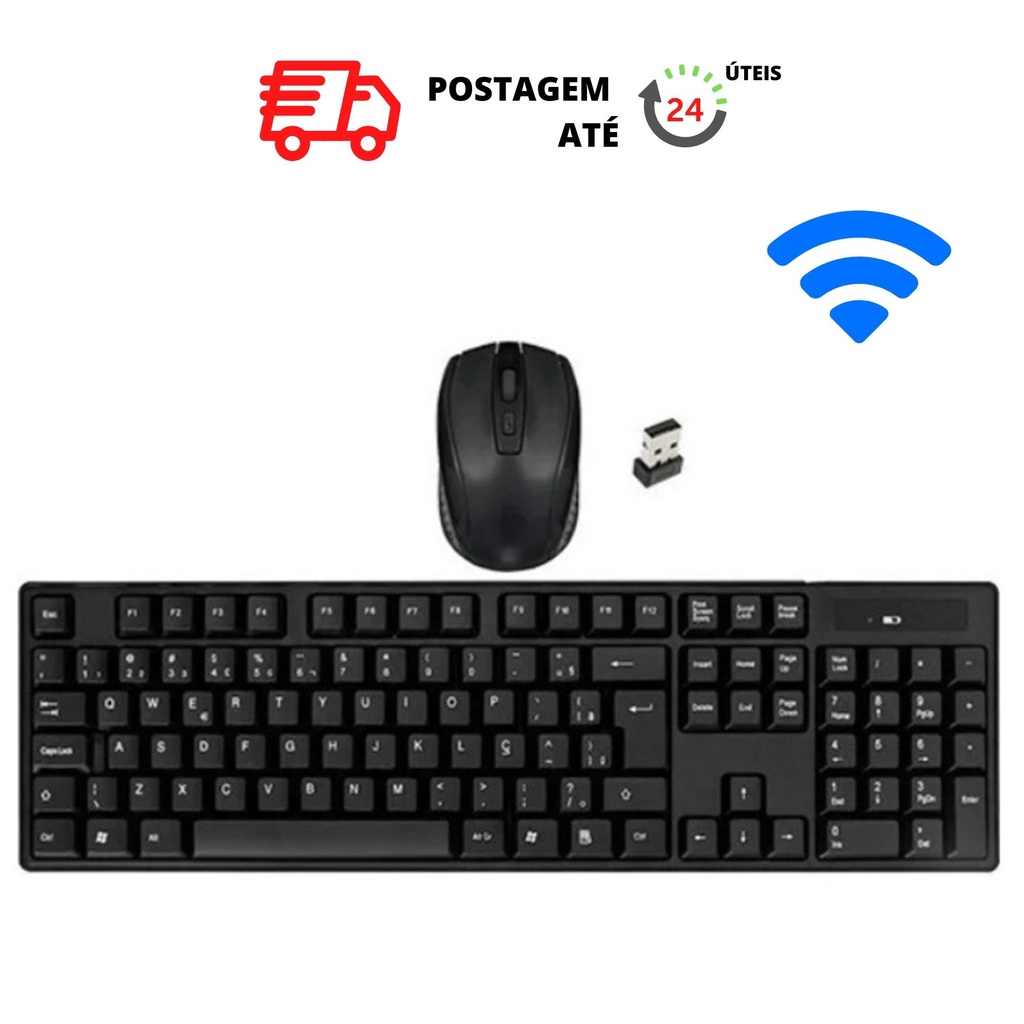 Kit Teclado e Mouse Sem Fio Wireless Português Plug Play USB