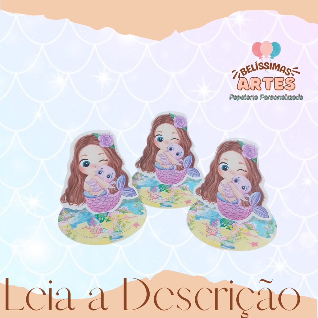10 Apliques em pé 3D Personalizado Sereia - Toppers Recortado Caixinha Acrílica Latinha Enfeites Tags