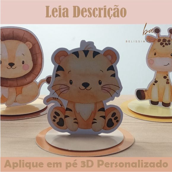 10 Apliques em pé 3D Personalizado Safari - Toppers Recortado Caixinha Acrílica Latinha Enfeites Tags