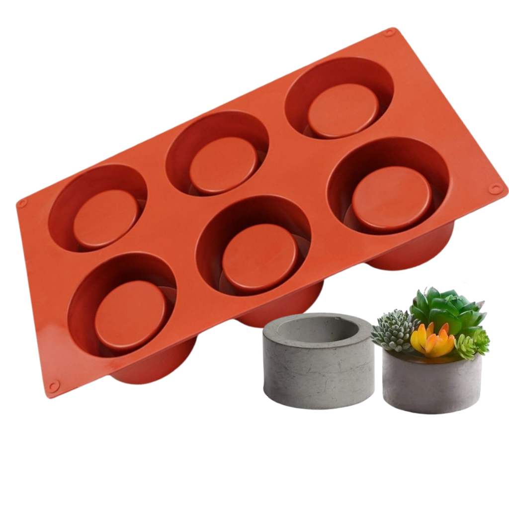 Molde de Silicone para Regina, Gesso, Cimento, Velas com 6 Cavidades Redondas