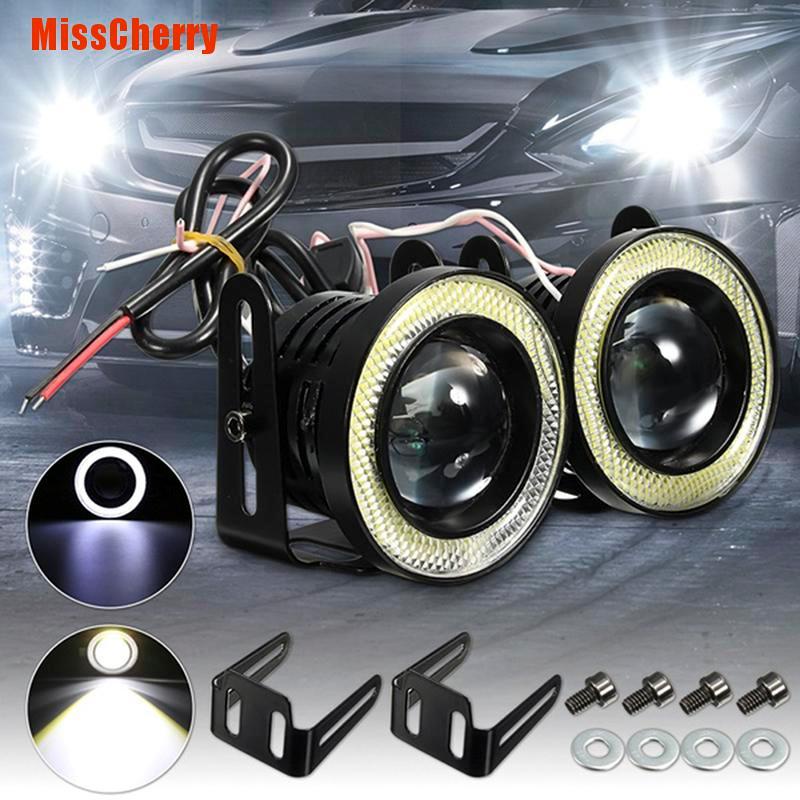 [2.5'15w Carro Branco Cob Led Projetor Anjo Olhos Azul Anel Drl Farol De Neblina