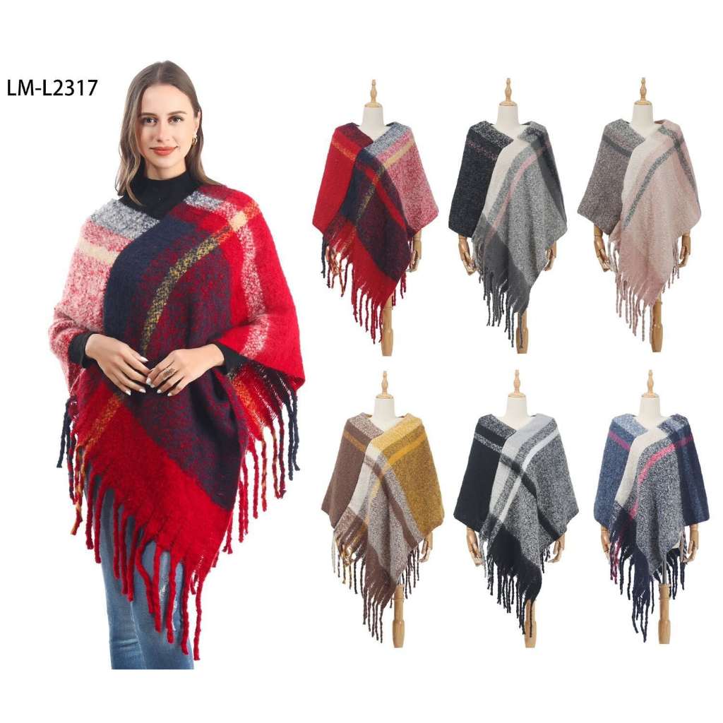 Poncho Xale Feminino Diversas Cores Tricô Crochê Elegante Quentinho Sueter Moda Inverno Xadrez 2317